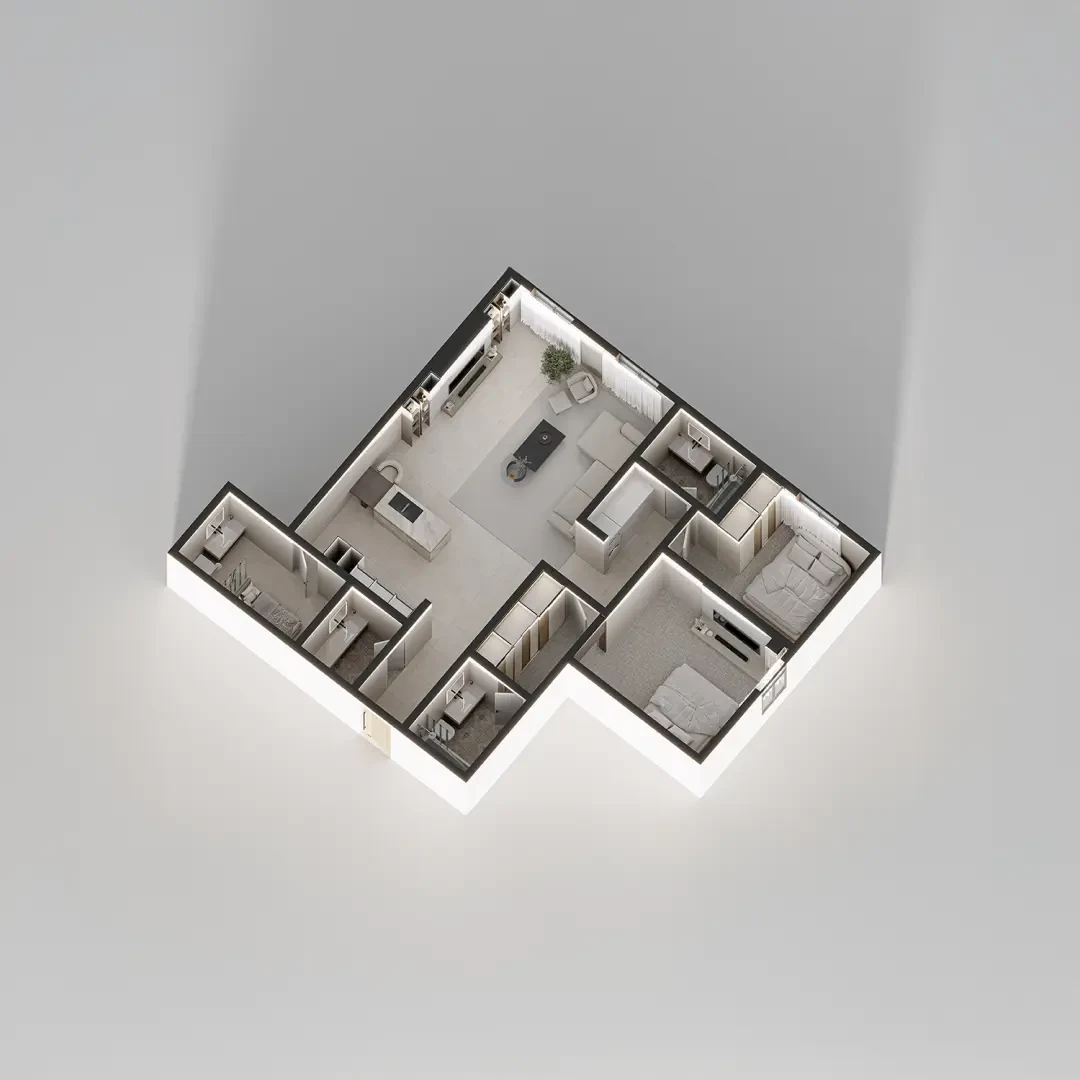 شقة امامية + مطله على الشارع +مطبخ امريكي + صالة + غرفة خادمة
