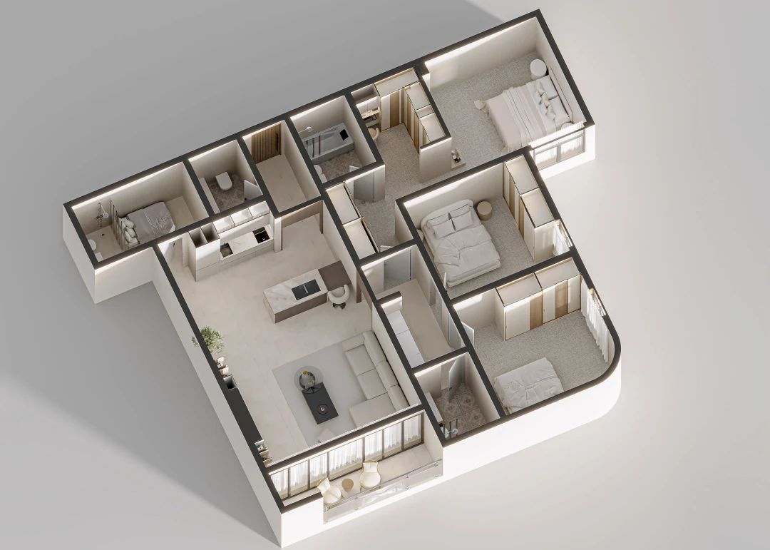 شقة جانبية زاوية + مطلة على الشارع + بلكونة + مطبخ امريكي + صالة + غرفة خادمة