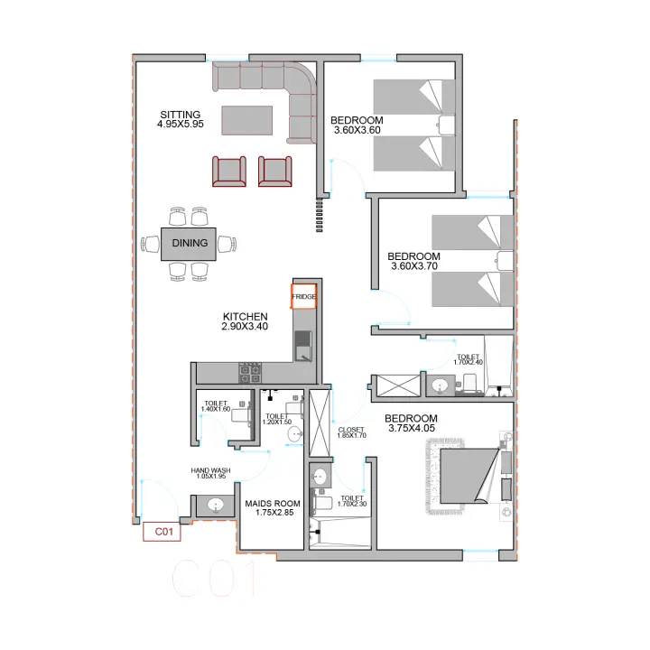 رقم الوحدة #C01